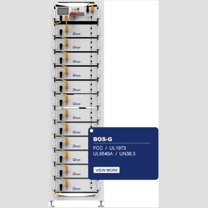 The Deye BOS-G series is a state-of-the-art LiFePO4 battery system designed to provide reliable, safe, and efficient energy storage for your home or business. With a wide range of configurations and capacities, the BOS-G series offers a versatile solution to meet your specific energy needs.