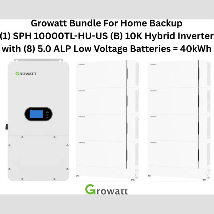 Hybrid Growatt System Bundle – SPH 10000TL-HU-US (Split-Phase) with 40kWh Backup Battery.
