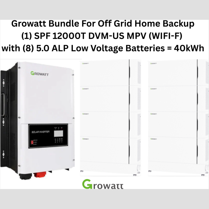 Off-Grid Full Home Backup System – Growatt SPF 12000T DVM-US MPV (WIFI-F) with 5.0 kWh Low-Voltage Battery